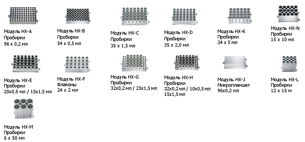 - 20 сменных блоков под пробирки от 0,2 до 100 мл